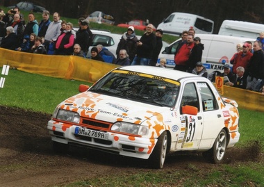 Samstag Morgen lockte dann mit Temperaturen knapp über dem Gefrierpunkt, aber die ersten Sonnenstrahlen kämpften sich schon durch. Gute Bedingungen für den „großen und schweren“ Sierra Cosworth. So lief der Start auf WP2 Sahrbachtal auch gut an: Platz 19 und 6 Sekunden schneller als Dauerkonkurrent Norbert Zaremba auf seinem BMW M3. Der Rest in der Klasse allerdings fast übermächtig Jonas Tischner mit Platz 2 gesamt und auch der Niederländer Edwin Wolves auf Platz 9.