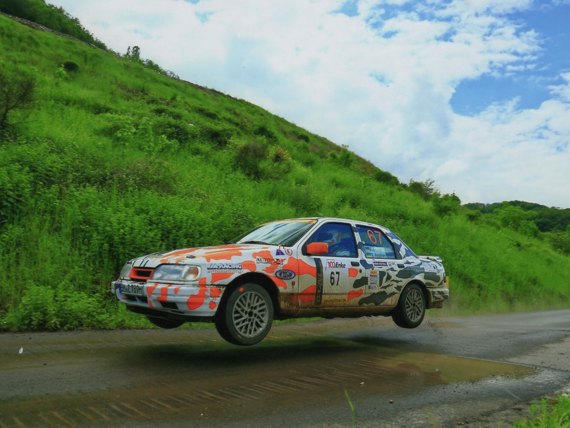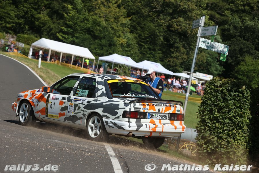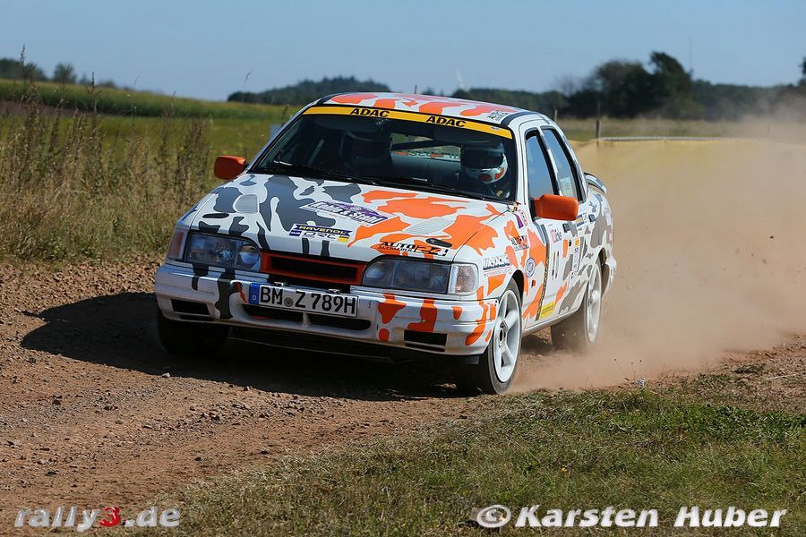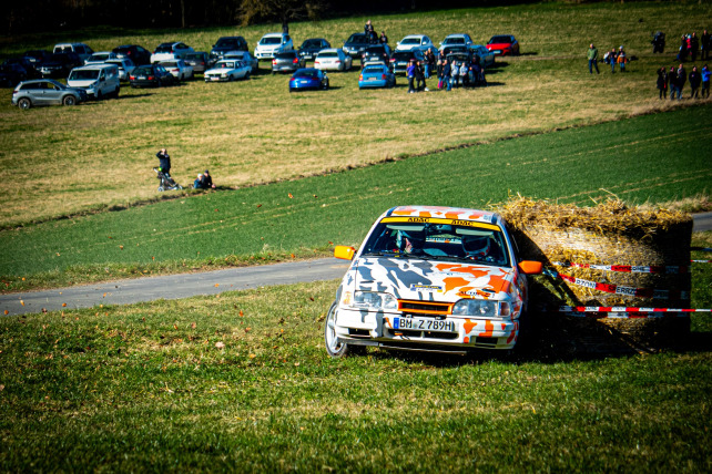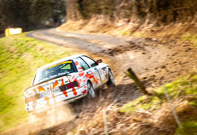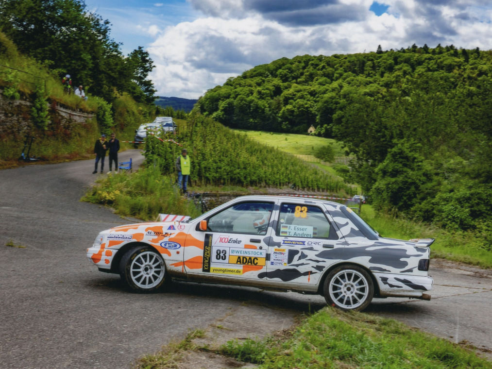 Bereits auf WP2 sorgte eben eine solche Stelle für einen ersten Aha-Moment im Cockpit des Sierra Cosworths von Frank Esser/Tobias Andres, rutschte man in einer mittelschnellen Linkskurve des besonders anspruchsvollen Sprints „Hosenbachtal“ in die Böschung. Glück im Unglück, konnte das Team ohne Schäden am Fahrzeug seine Fahrt fortsetzen. Zur Halbzeit zeigte der Blick auf die Fahrzeiten, dass sowohl nach vorne als auch nach hinten in der Klasse Y14 wenig zu erreichen bzw. befürchten sein würde – „konzentriert Durchfahren“ lautete somit die Devise.