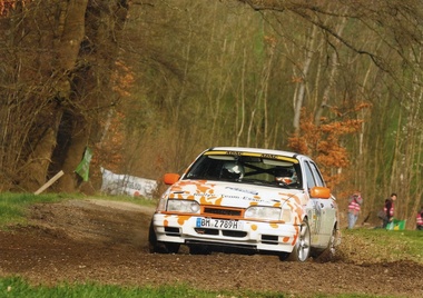 Samstag Morgen lockte dann mit Temperaturen knapp über dem Gefrierpunkt, aber die ersten Sonnenstrahlen kämpften sich schon durch. Gute Bedingungen für den „großen und schweren“ Sierra Cosworth. So lief der Start auf WP2 Sahrbachtal auch gut an: Platz 19 und 6 Sekunden schneller als Dauerkonkurrent Norbert Zaremba auf seinem BMW M3. Der Rest in der Klasse allerdings fast übermächtig Jonas Tischner mit Platz 2 gesamt und auch der Niederländer Edwin Wolves auf Platz 9.