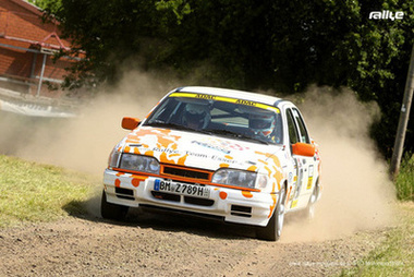 Die Abstimmung mit dem neuen Co lief von Anfang an gut, so daß die erste WP auf Platz 27 gesamt und Platz 4 bei den Youngtimern erfolgreich absolviert wurde. WP 2 mit Platz 26 noch einen Platz besser. Aber dann kam WP3, und das Team ging mit etwas Übermut in die erste Runde. Kuppe 100 in Rechts 2 minus führte zu einem unsanften Ausflug in den Notausgang geradeaus. Tiefe Löcher setzten dem Fahrwerk und Unterfahrschutz heftig zu, aber mit einem großen Bogen über die Wiese ging die Fahrt dann doch weiter. Der Cossie fuhr noch gut, aber die WP-Zeit war dahin. Platz 32, aber mindestens 15 Sekunden liegen gelassen. Platz 25 gesamt, aber nur 6. bei den Youngtimern zur Halbzeit.